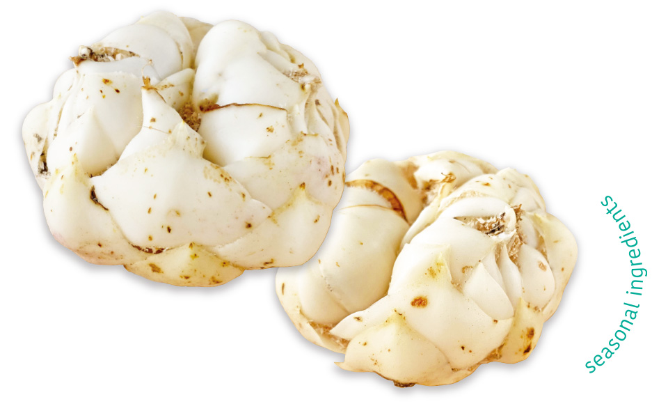 裏ごししたユリ根に白身魚のすり身や山芋を合わせて蒸し、葛あんをかける京料理「百合根饅頭」は、関西の料亭の懐石料理として提供される贅沢な1品。「かぶら蒸し」、海老や魚の「炊き合わせ」などの添え野菜にもユリ根がよく登場する。天ぷら専門店や割烹で味わえる「ユリ根のかき揚げ」も冬の人気メニューだ。その他、「素揚げ」にして塩を振ると素材の甘みが際立ち、冬の酒肴としても楽しめる。「ポタージュ」や「グラタン」など洋風料理に応用しても風味豊かで、ホクホク感が料理全体を優しくまとめてくれる。