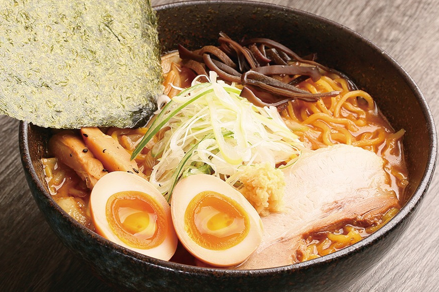 独特の風味を出す赤味噌、甘みのある白味噌など種類豊富な味を提供。12時間じっくり煮込んだスープは、濃厚ながらサッパリとした後味で、中太のちぢれ麺ともよく絡み、とろけるチャーシューも美味。ほかにも豊富なラーメンやつけ麺、油そばなど多数用意。サイドメニューも充実。